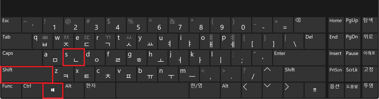 원하는 화면을 캡쳐하려면 아래 키 조합을 누릅니다.